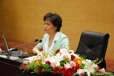 许琳为学员们作了题为《国际汉语教师的使命》的报告,她用生动、幽默的语言,大量翔实的事例围绕形势与任务、挑战与困难等方面进行了阐述,并对派出教师及培训提出具体要求。她说,作为首批培训班学员,派出教师不但要具有高度的光荣感、使命感和责任感,更要摆正心态,学会“先做学生,后做老师”。